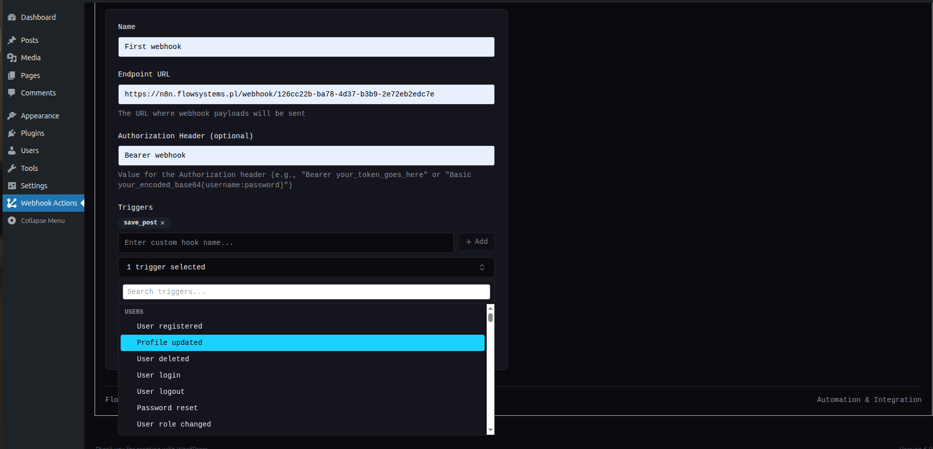 you can enable "Include User Data"."Solid plugin. Super easy to set up and it just works. If you need reliable webhooks this makes the whole process a lot easier."Axel — WordPress.org review